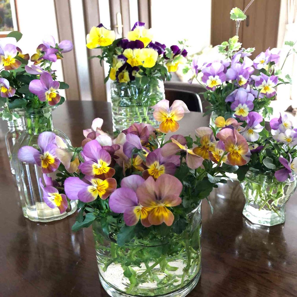 そうですね、このシーズンだけ、たくさんのビオラに囲まれていいのを選び花瓶挿しにするとき、花の香りが漂って至福のひととき✨ですね💓