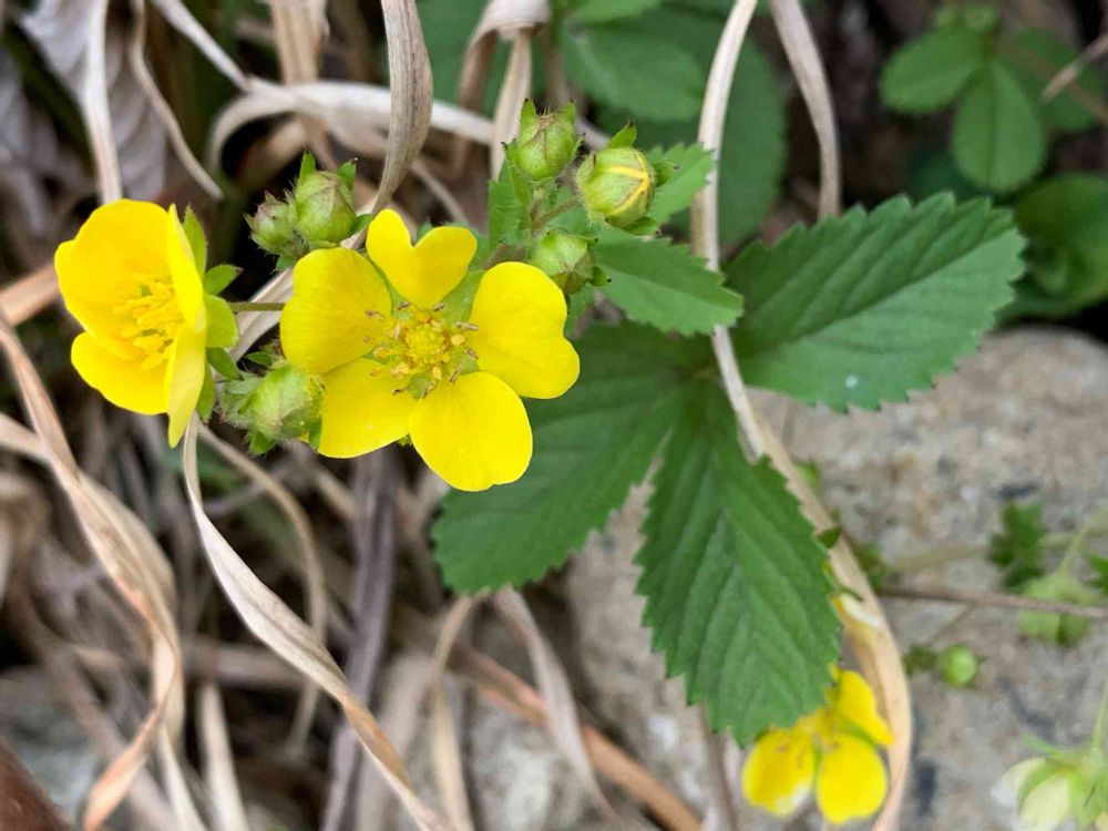 ヘビイチゴなんかより茎が繊細で、キジムシロよりも軽く立ち上がってる感じ😄