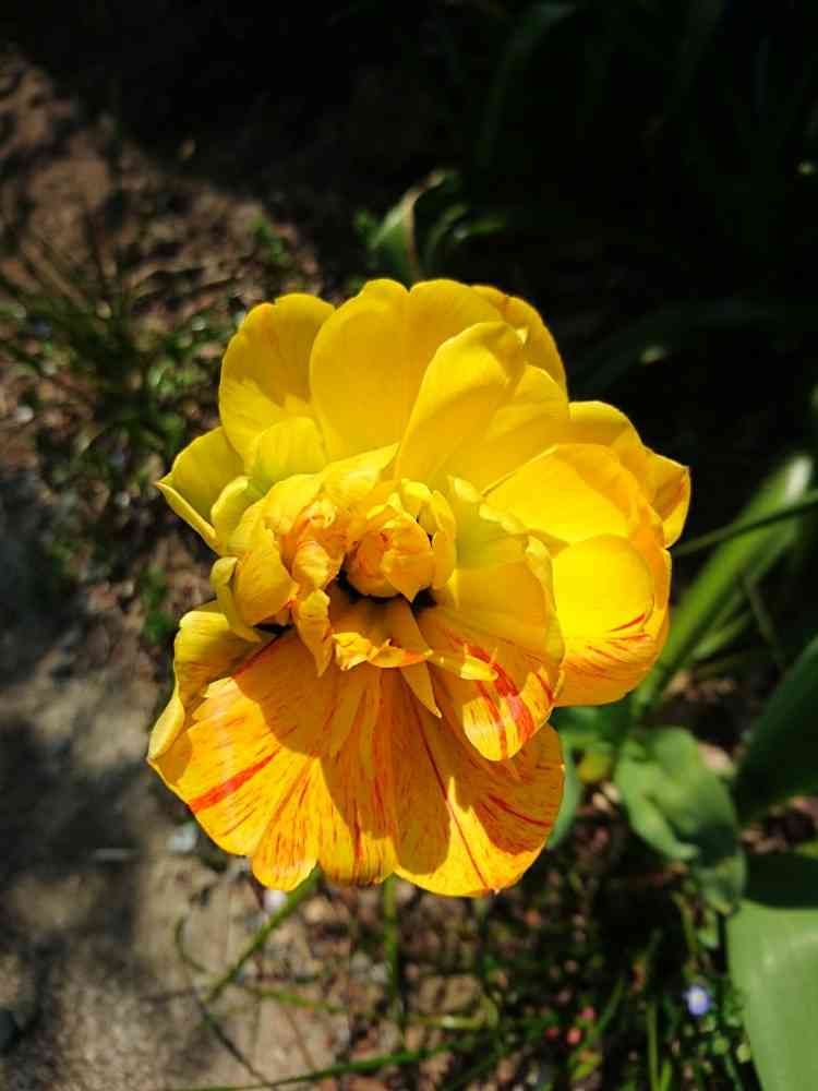 また 1輪 色づきが不思議な八重咲きチューリップ🌷