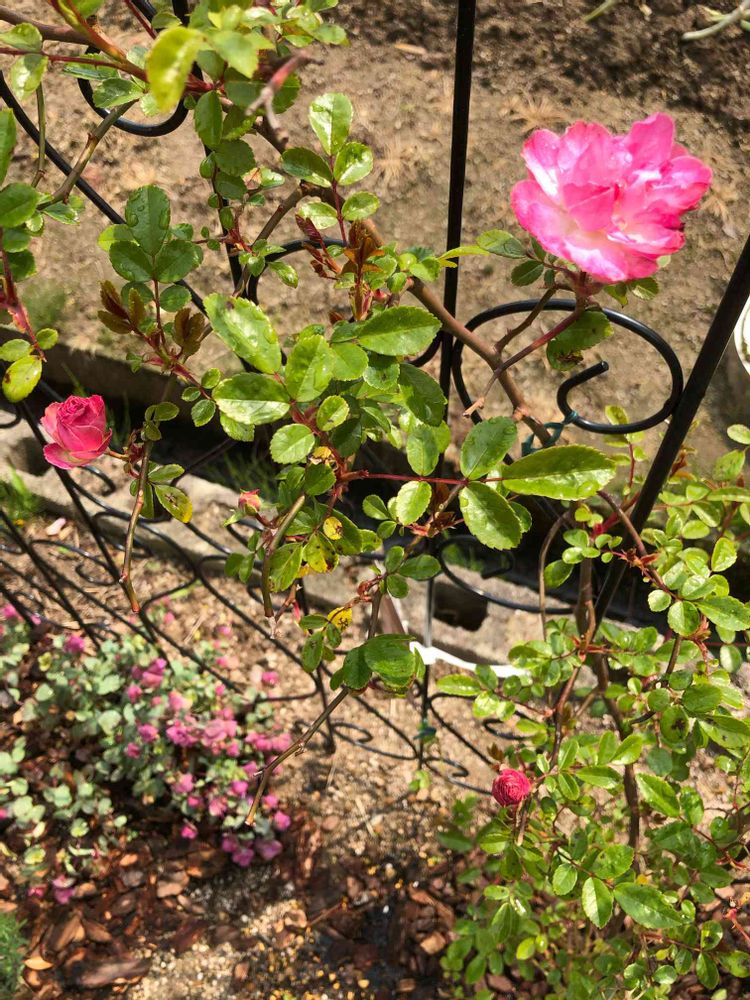 つるバラ玉鬘さん、咲きました❣️まだ小さい子ですが…