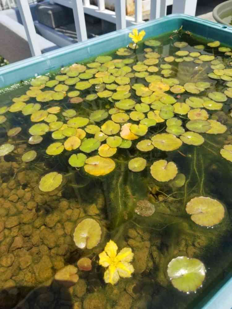屋上ガーデン,メダカの水槽,アサザの花の投稿画像