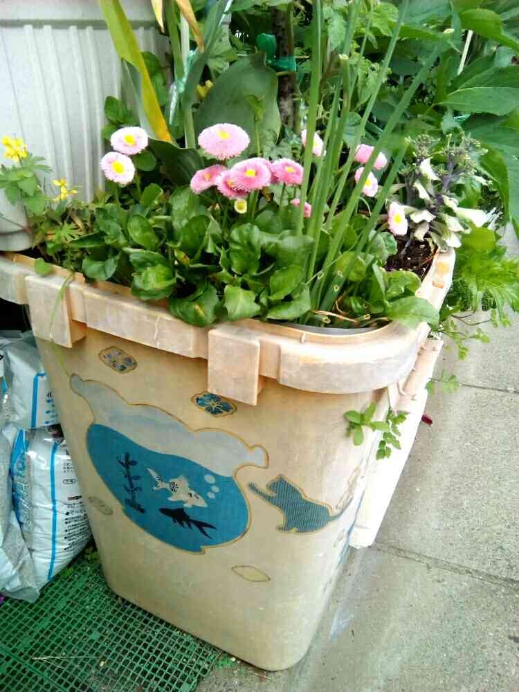 ゴミ箱を捨てようと思いましたが底に穴を開けプランターにしました(笑)