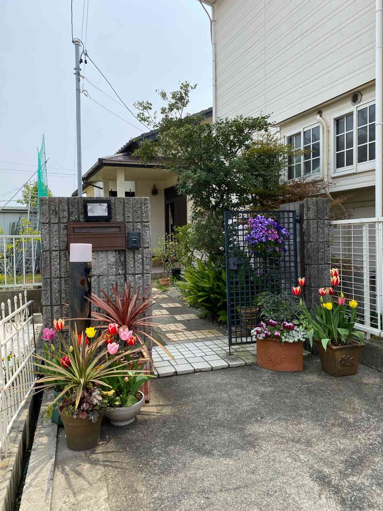玄関の寄せ植えのレイアウトを変えてみたら、