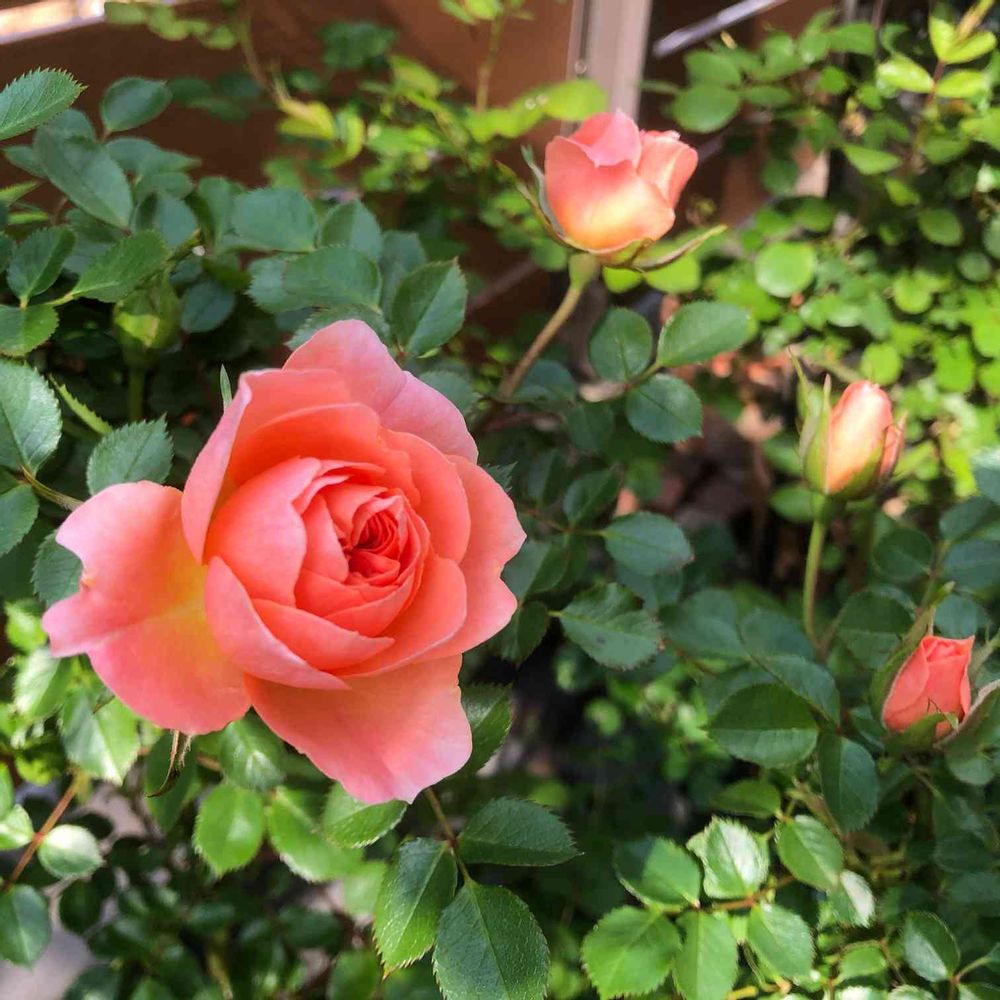 ステイホーム週間2日目、ベランダのスイートドリーム が可愛らしく咲きはじめました。