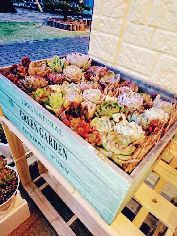 この、寄せ植え木箱は、前植え替えしたいって言ってた?鉢の多肉ちゃんたちですか?