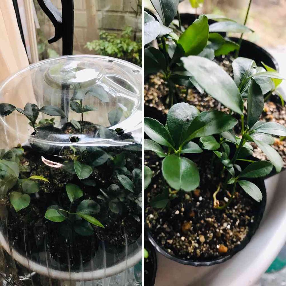 ドームに入れて2ヶ月くらいかなぁ?🌱大きくなり過ぎて、つっかえてしまった柚子の実生苗😅