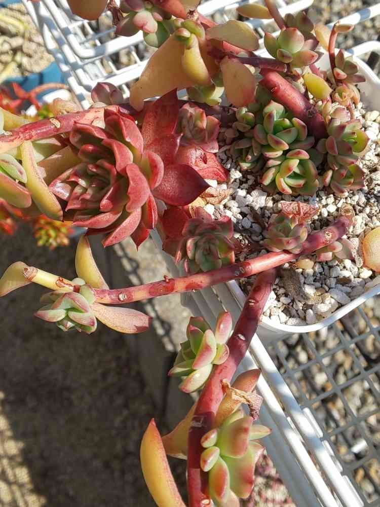 この子も一昨々年の秋から育てていて、めちゃくちゃお気に入りの子💕元々は見切り品を救出してきたところから始まってます。結構育って暴れる感じになってきたんで「仕立て直さずに育てよう!」と思ってたけど、何せ場所を取る!しかもちょっと強めの風で転がる!😱我慢ならなくなって、2/13~3/8にかけてカットできる大きさの頭をカットしてセルトレーに挿して育成中🎶個々のロゼットを大きくしてやがて立派で素敵な丼になる予定🤩きっと見応えある感じになるはず🤭