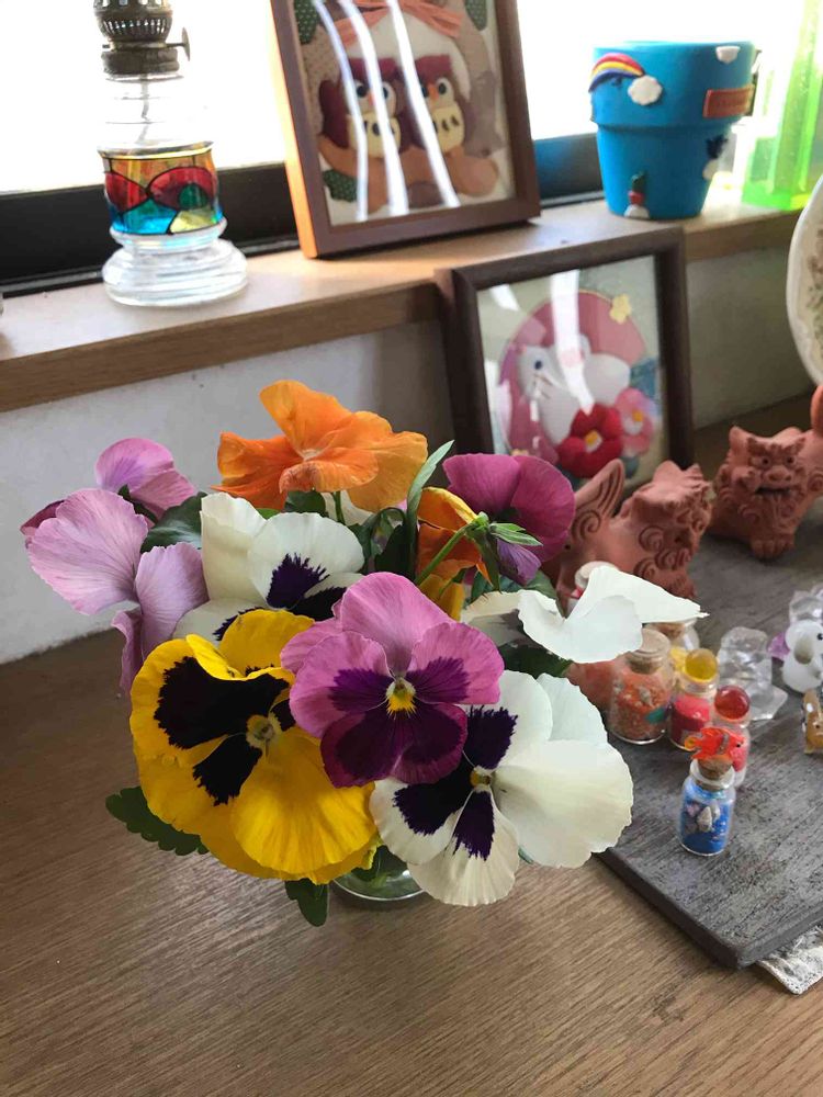 パンジーを飾って、可愛いコーナーが益々華やかになってるね⸜(* ॑꒳ ॑* )⸝⋆*💓💓