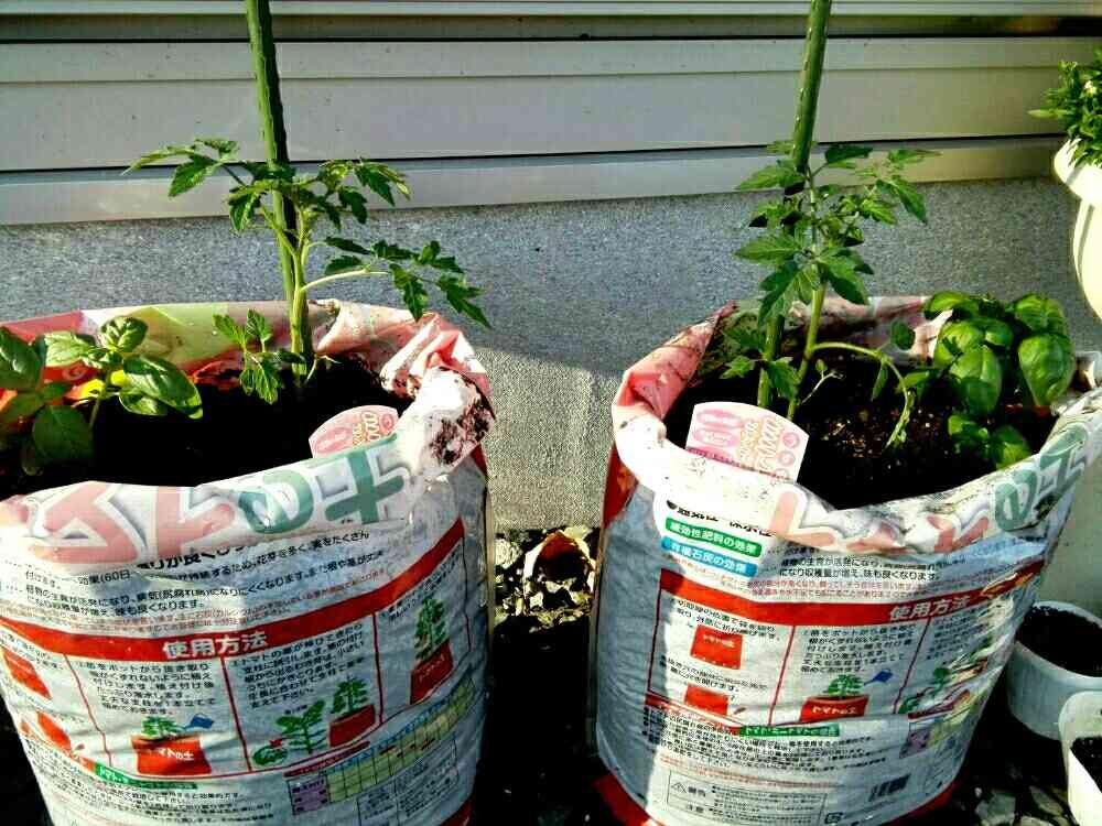 土袋に直接植付け。職場の先輩から「楽でいい」と教わって、発売チャレンジです!!