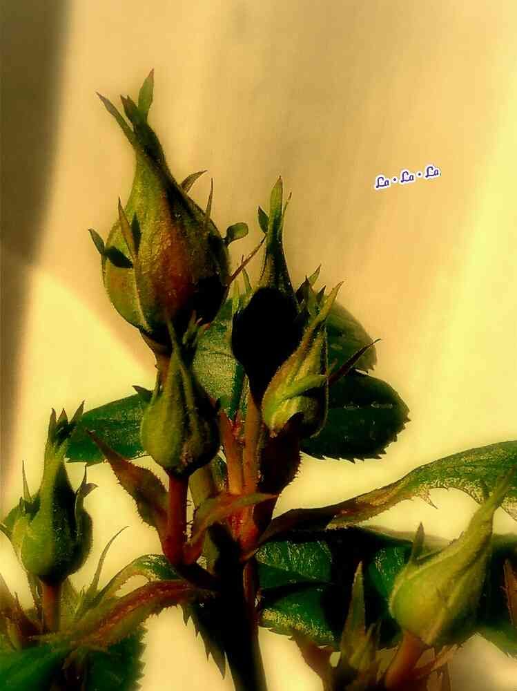 ミニバラがシンデレラ城のような蕾をつけました😍