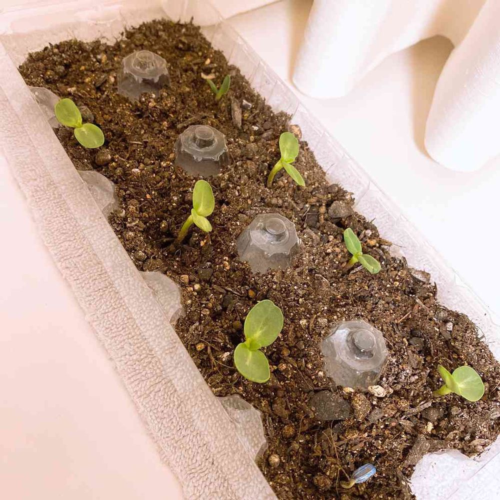 ミニひまわり,卵パック,経過観察中の投稿画像