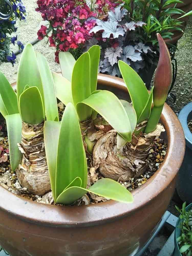 アマリリスの蕾がニョッキリ〜ロウソクみたいです🤭
