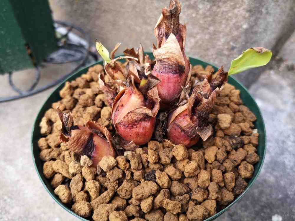 子株が沢山付いてるので、数年後には地湧金蓮ガーデンが完成してるといいな。