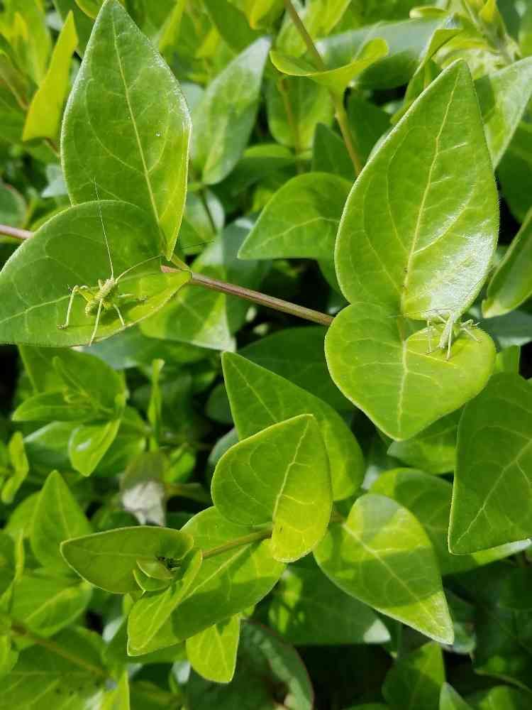 ひろさんの広い庭,ツルニチニチソウ,キリギリスの赤ちゃんの投稿画像