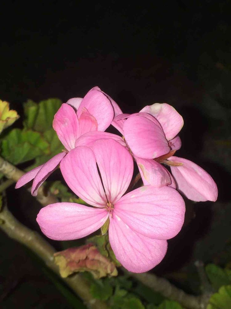闇夜に煌めくピンクのゼラニウム素敵です💕