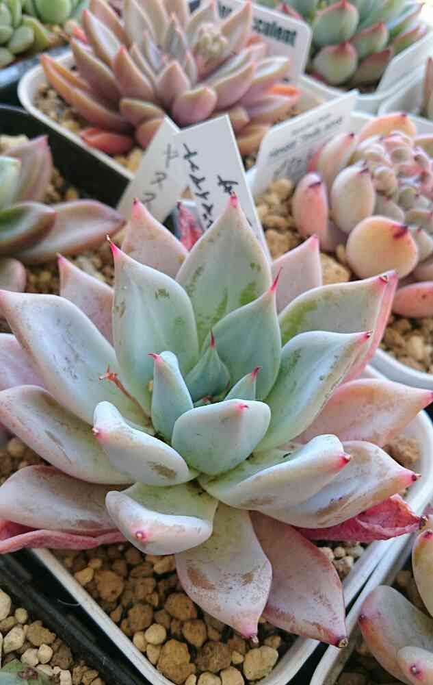 爪がピンクでかわいくてメキシカンの白長い葉が美しい交配種ですね😊