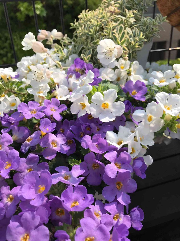 2段の鉢に植えたシレネとステラ(バコパ)2色がモリモリになってきました🎶