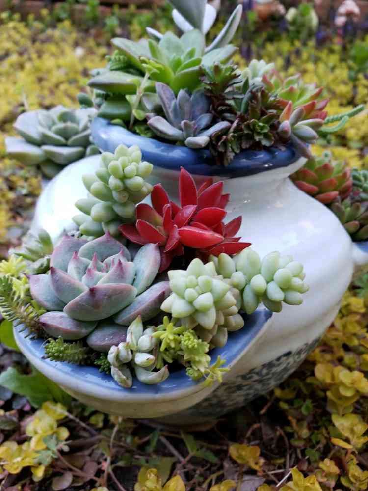 長年使ってなかったストロベリーポットに多肉を植えてみました