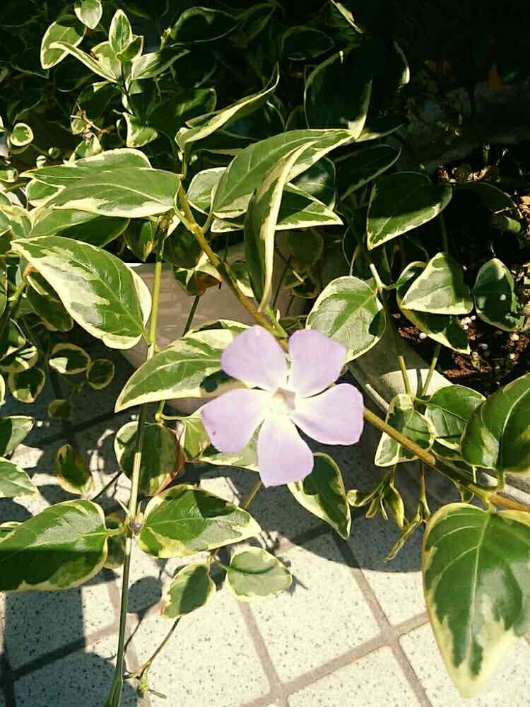 斑入りの多年草ツルニチニチソウ、今年の2輪目咲く、やはり花数少な