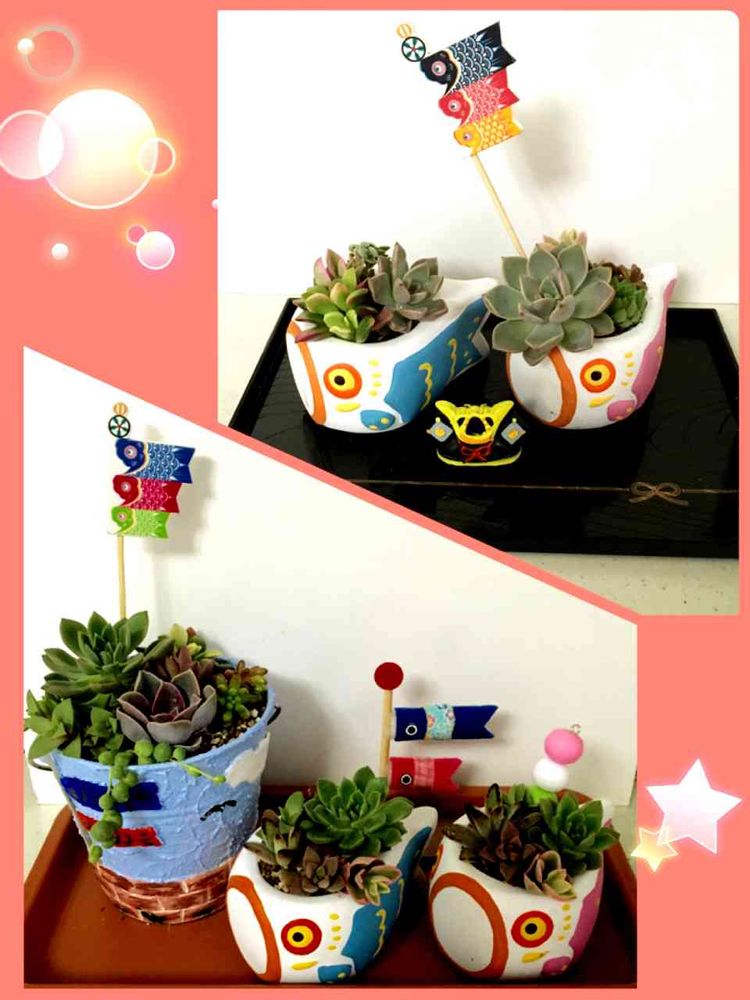 子供の日も近いので鯉のぼり寄せ植え作りました🎏 元職場と娘の職場に置きましたo(^▽^)o 鯉のぼりリメ缶も作ってみました✌️