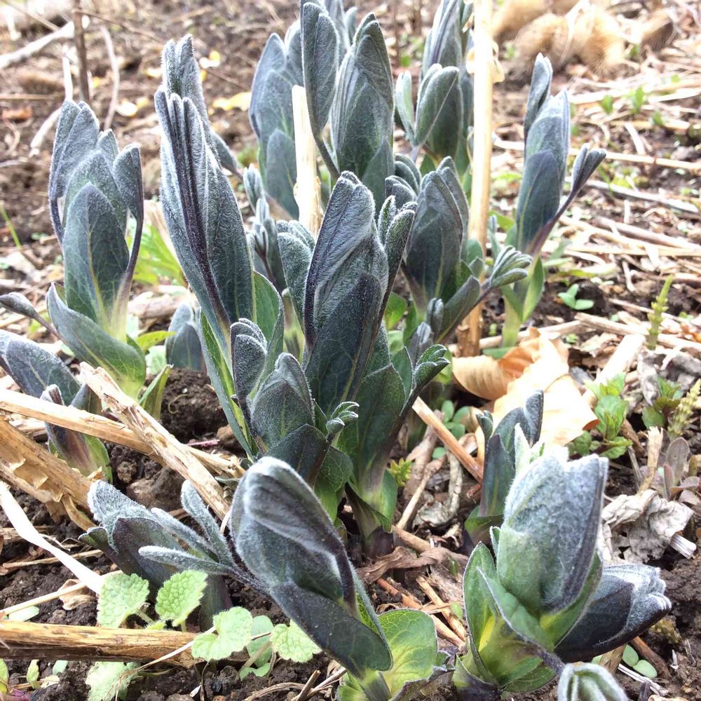 センダイハギの芽吹きがとても良い毛並み。ベルベット感満載。