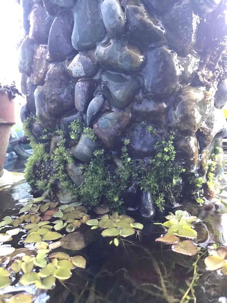 ベランダ池の滝に、やっと自然のコケが広がりを見せてきました!