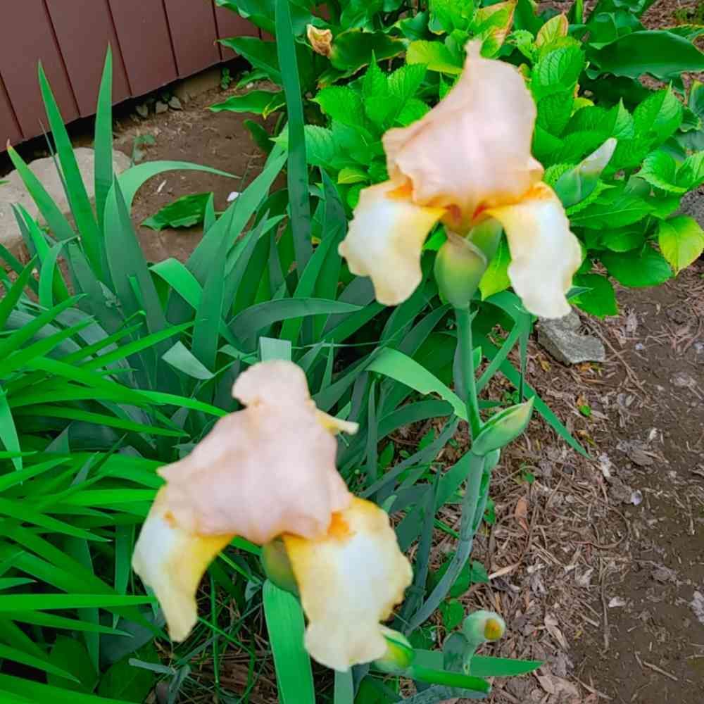 ジャーマンアイリスが咲いています。本来の色ではないと思いますが、この色も綺麗です😄