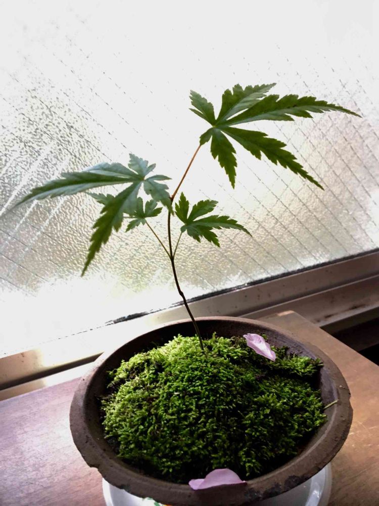 今日、庭の雑草抜きをしていると、実生の小さな楓が生えてきていました!藤のすぐ側で大きくなっても困るので庭の苔と一緒に盆栽もどきを作ってみました😅どうなるのかな?元気でいて欲しいです💓