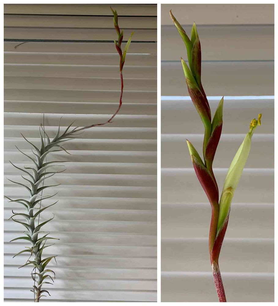 他のチランジアとは結構草姿が違いますよね😁花は自分も知らなかったんですが、緑色で面白いですね🎶