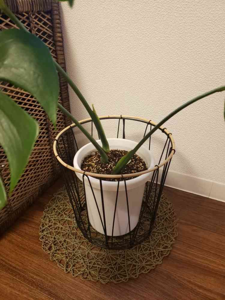 昨年末に会社から株分けしてもらったモンステラ🍀全く変化が無かったけどヒョコっと出てきました🙆