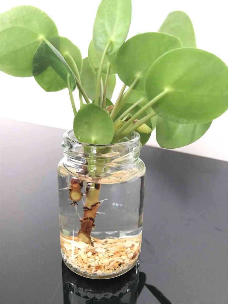 4/23に水挿ししたピレア・ペペロミオイデスの子2株。