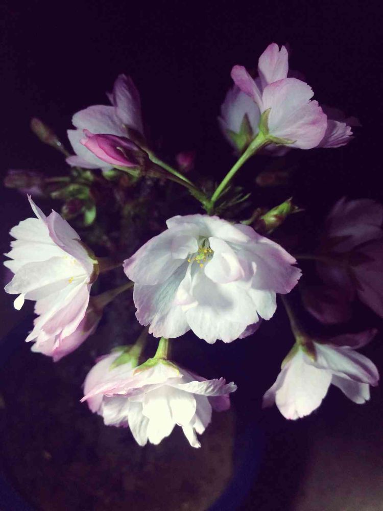 盆栽の桜がやっと咲いたのを夜に発見して急いで撮影