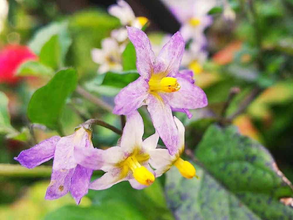 花色は淡い青紫色で、その色の濃淡は株によってちがいます。白い花をつける株も存在し、これはシロバナワルナスビと呼ばれています。