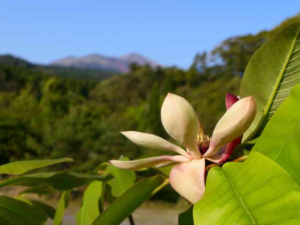 素敵です、色もほのかにについていて、なんともいえない、さらに、南国の、山も、素敵😍です!。このはなが咲くとき、パカッって音がするって聞いたことあるんですけど、ほんとかなー