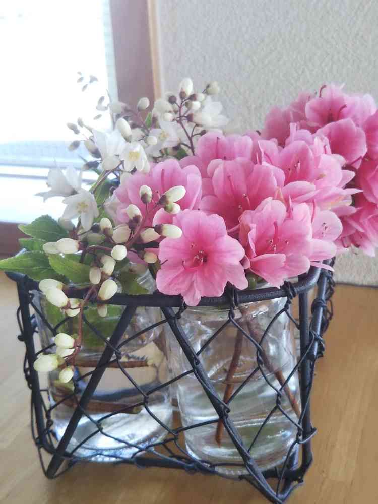 この季節大好きなヒメウツギと久留米ツツジを飾ってみました😆