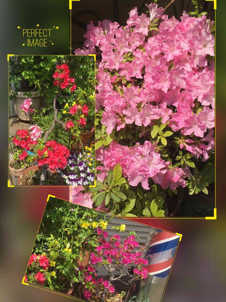 ツツジの花が綺麗に咲いていました。散髪屋さんの鉢植え