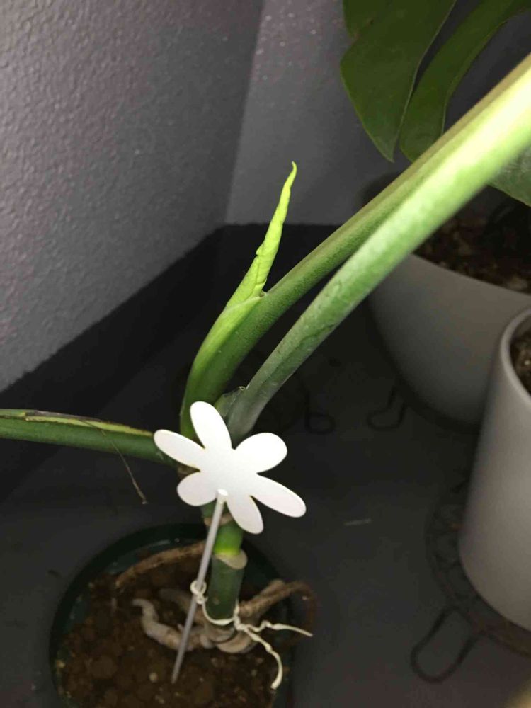 根腐れっぽい感じだったモンステラ デリシオサをスリット鉢に植え替えたんですが、新芽が出てきましたー!😀