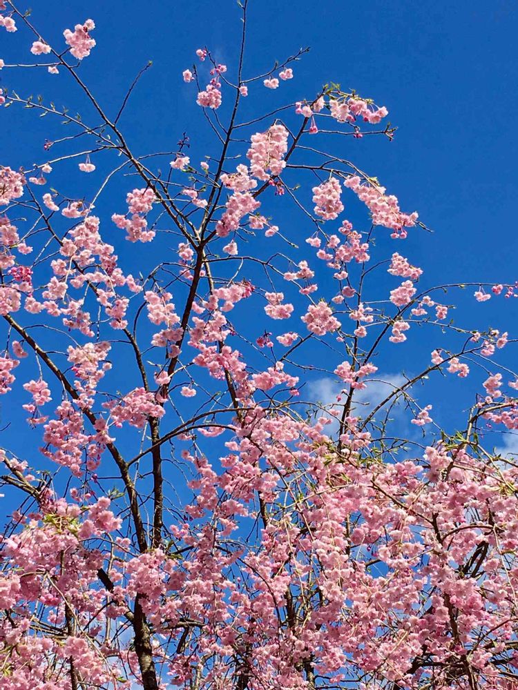 青い空とピンクのしだれ桜🌸春を満喫😊