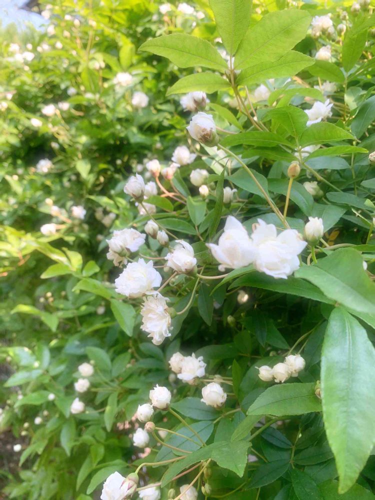 木香薔薇は薬散布も肥料もあげてないけど(肥料あげると葉っぱばかり茂るからダメらしい)元気です