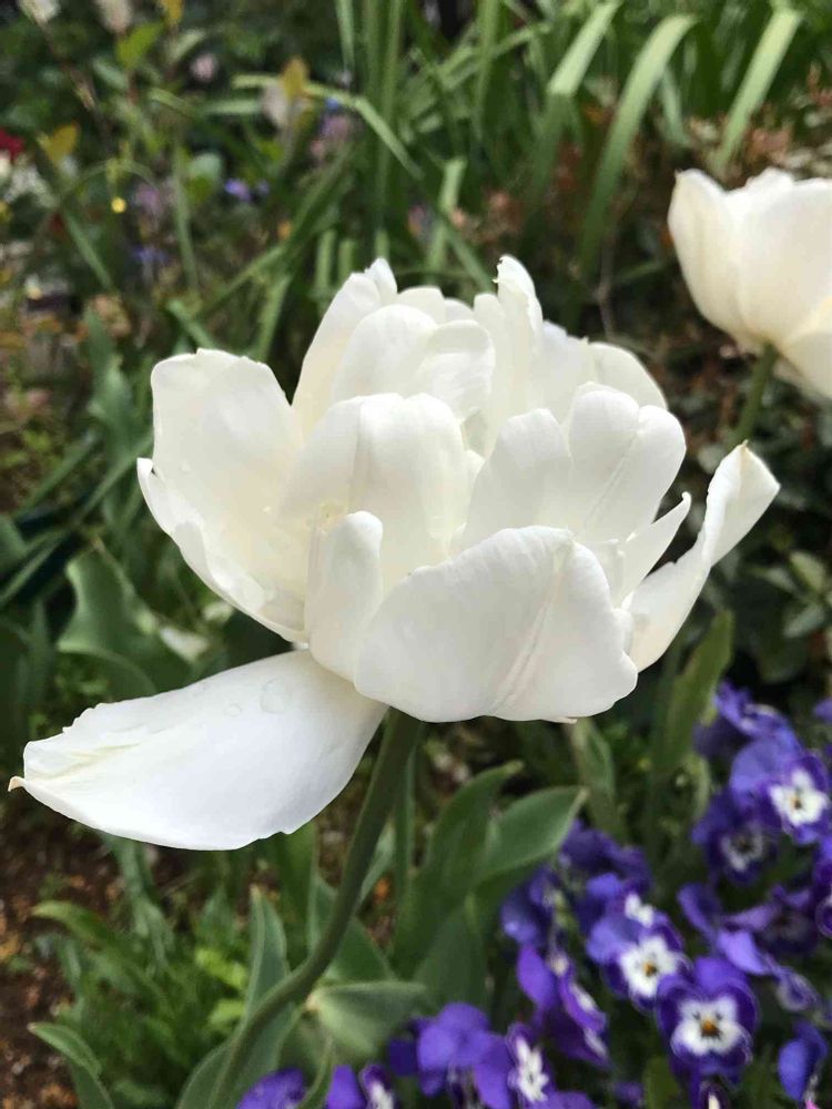 このチューリップ。開いて13日以上たってる。花もちがいいわ💕純白素敵です。