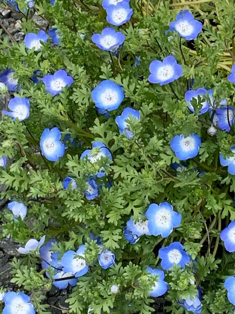 去年海浜公園で種を買ってきて11月位に種まきして育てたネモフィラちゃん、育ちましたけど思った以上にワサワサです‼️