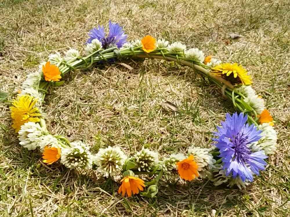 ヤグルマギク、タンポポ、フユシラズ、シロツメクサで花冠を作ってみました!今までで一番上手くいったーー😆