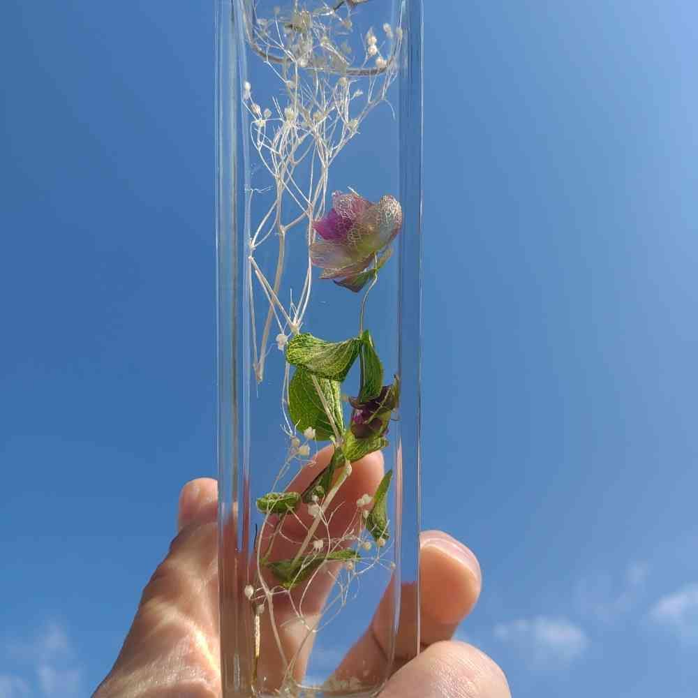 ケントビューティーの一枝をどうしていいかわからず、ダイソーのハーバリウムに追加投入!