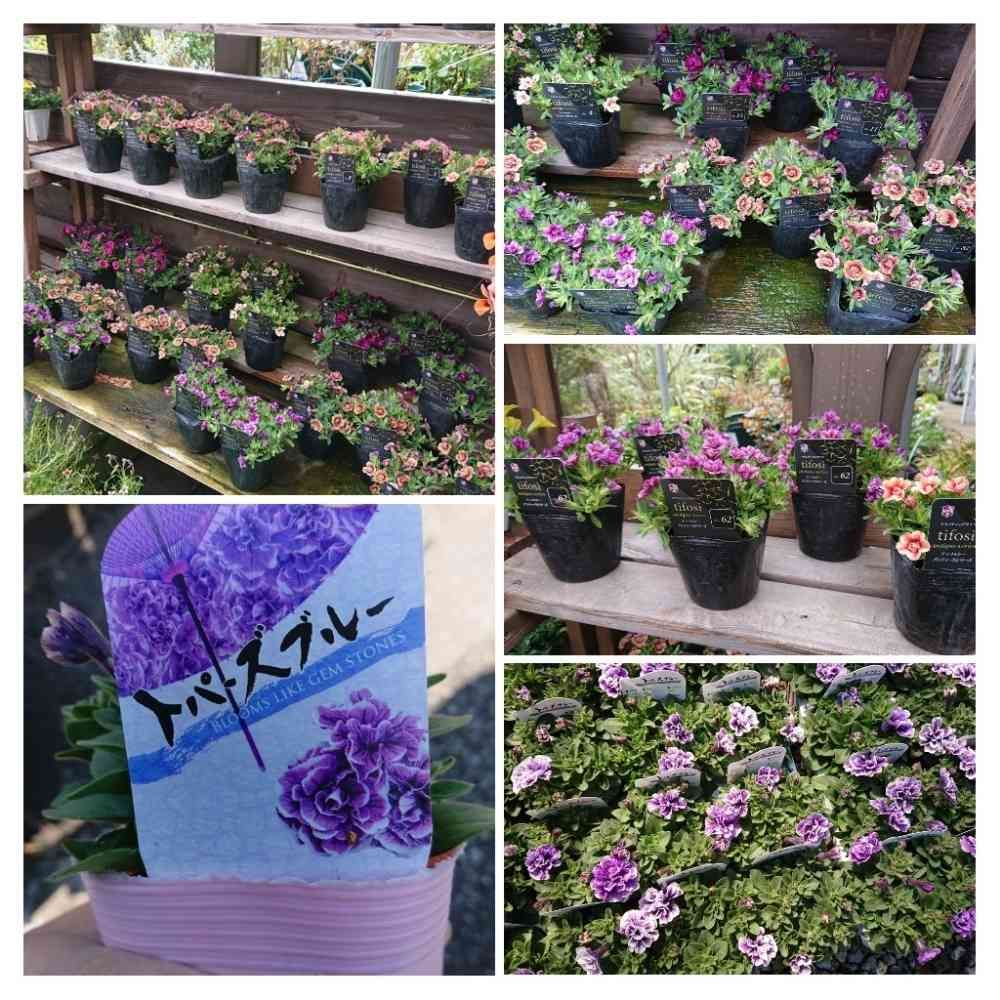 今年の新品種の小輪八重咲きペチュニア“トパーズブルー”、毎年大人気の八重咲きカリブラコア“ティフォシーアンティーク”入荷しております!