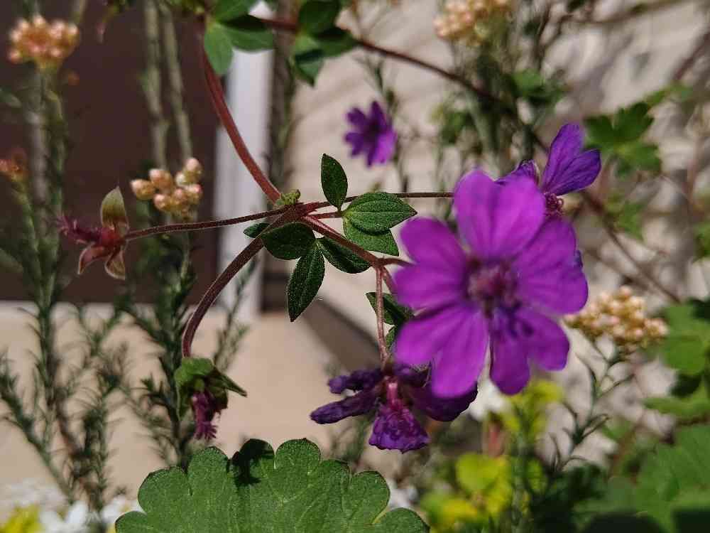 今朝も、紫色の小さなお花ゲラニウムは、風に身をまかせ、