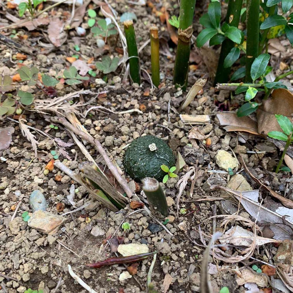 地面に埋まるように花咲いて実が付いて、大体見逃すんですが、改装都合でほぼ引き抜かれたので今見えてる。