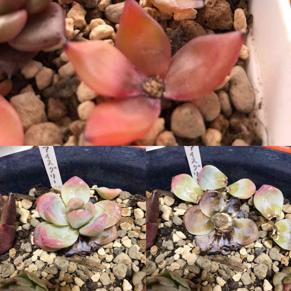 私も水のやり過ぎだったかもです。何となく下の方枯れ気味かなと軽い気持ちで様子を見ていたらまさかの溶ける事件でした😓
