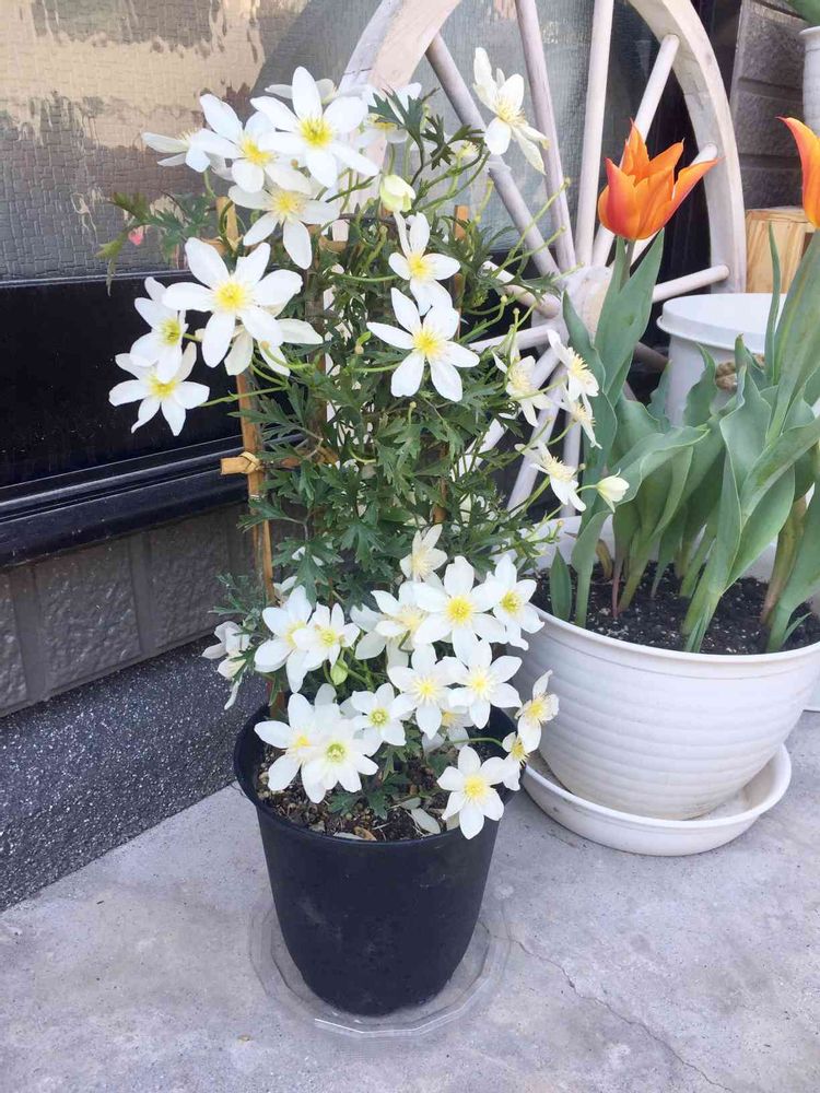 今年はもう出会えないかなと諦めていたクレマチス・カートマニージョ❣️ふらっと寄ったホームセンターで私を待っていました❣️だいぶ散ってるけど、まだ少しだけツボミもあるし、嬉しいです(≧∇≦)