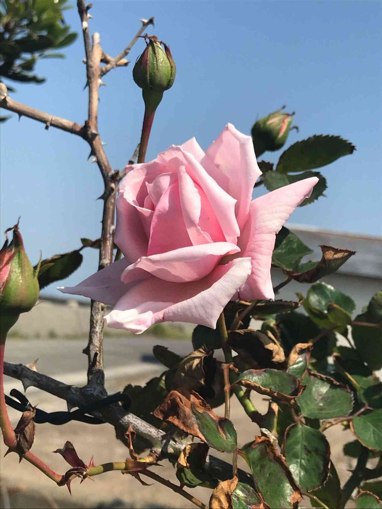 先日の強風で潮風を浴びて塩害を受けたけど、綺麗に咲いてくれる強いバラさん。