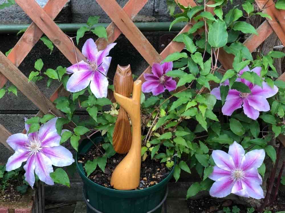 クレマチス、フクロウ祭に良いタイミングで咲き揃ってくれました😊
